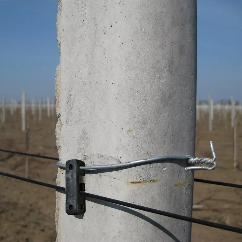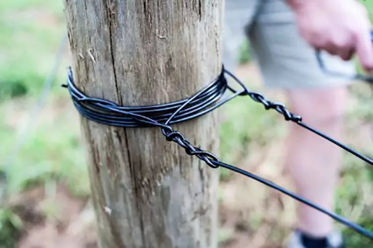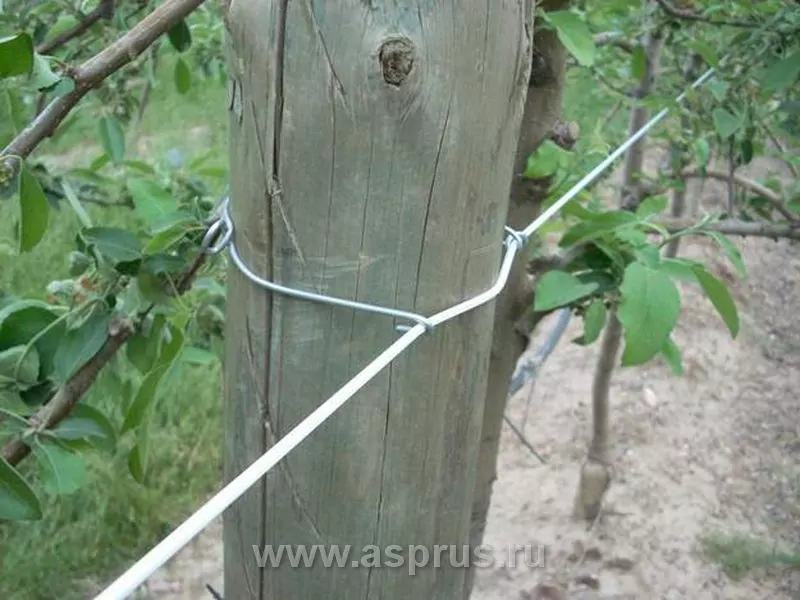 Протяните трижды конец проволоки под витками агрошпалеры на столбе.