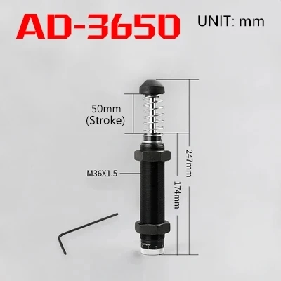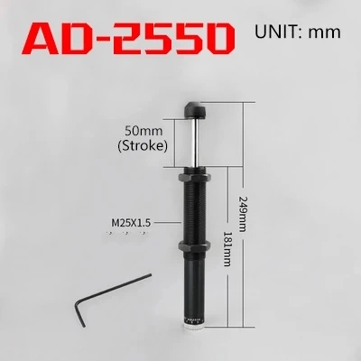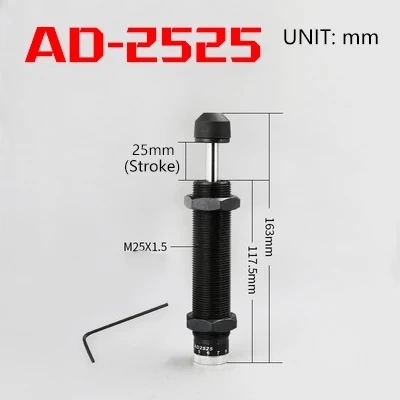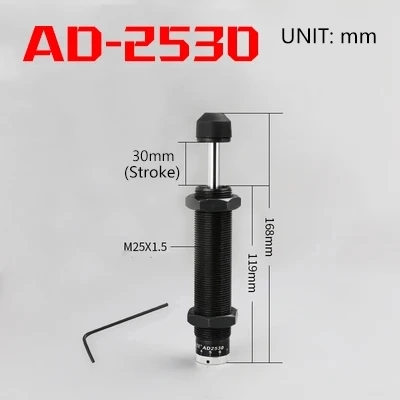 Серия AD: Также называется регулируемым масляным амортизатором, позволяет регулировать оптимальную силу поглощения амортизационной энергии в зависимости от изменений скорости движущегося объекта. Кроме того, для обеспечения точности и эффективности регулирования в его конструкции используется блокирующее устройство.