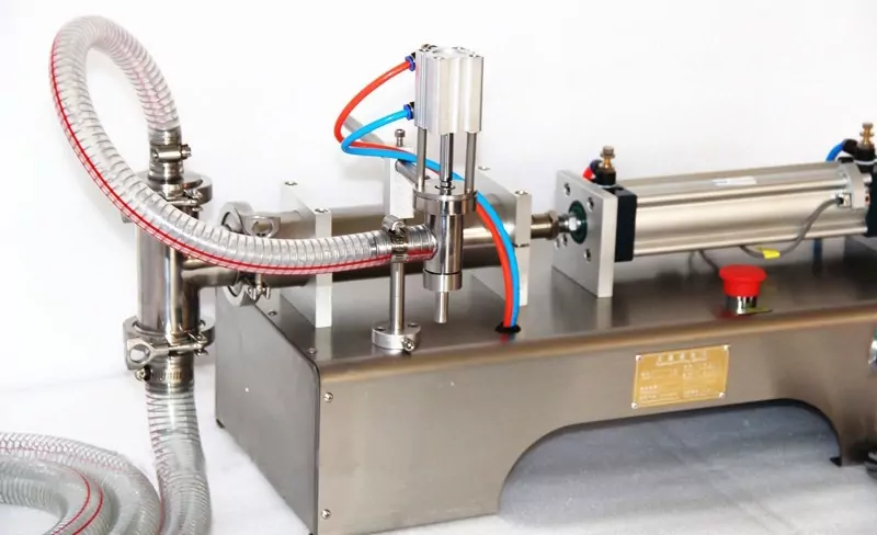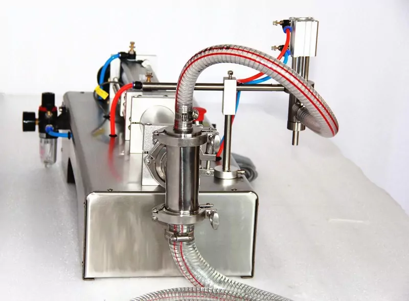 Пневматическая фасовочная машина с одинарным выходом жидкости. Используется на фармацевтических, пищеперерабатывающих, химических и парфюмерных предприятиях. Есть режим автоматической дозировки с интервалом. Подача продукта - всасывание через шланг.