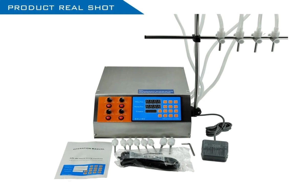 Полуавтоматический дозатор SYD580-4 Digital Control применяются для розлива жидких пищевых и не пищевых продуктов. Аппарат оснащен цифровой панелью управления, насос мембранного типа, насадка для розлива с настраиваемой высотой. Такой аппарат может закачивать жидкостный продукт из любой емкости. Имеет современный привлекательный дизайн, является удобным и эффективным в работе. Легкость в эксплуатации позволила данному виду дозаторов занять достойное место на рынке фасовочно-упаковочного оборудования, в частности для малых производств.
