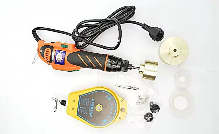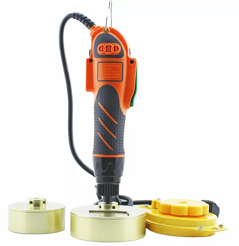 Укупорщик с электрическим приводом легко переносится, ее можно использовать для затягивания или закручивания различных колпачков. Регулируемая сила затяжки эффективно предотвращать повреждение крышки и уменьшать износ и разрыв силиконовых вкладышей. Как только крышка полностью затянется, сработает трещётка машина остановит вращающуюся головку.
