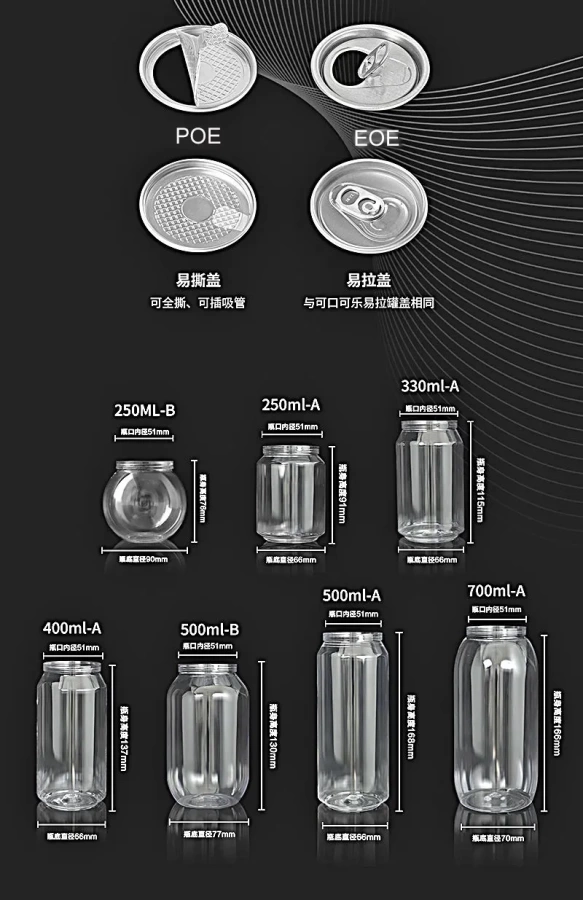 Размеры ПЭТ банок и крышек easy open (мин. заказ коробка 200 шт)
