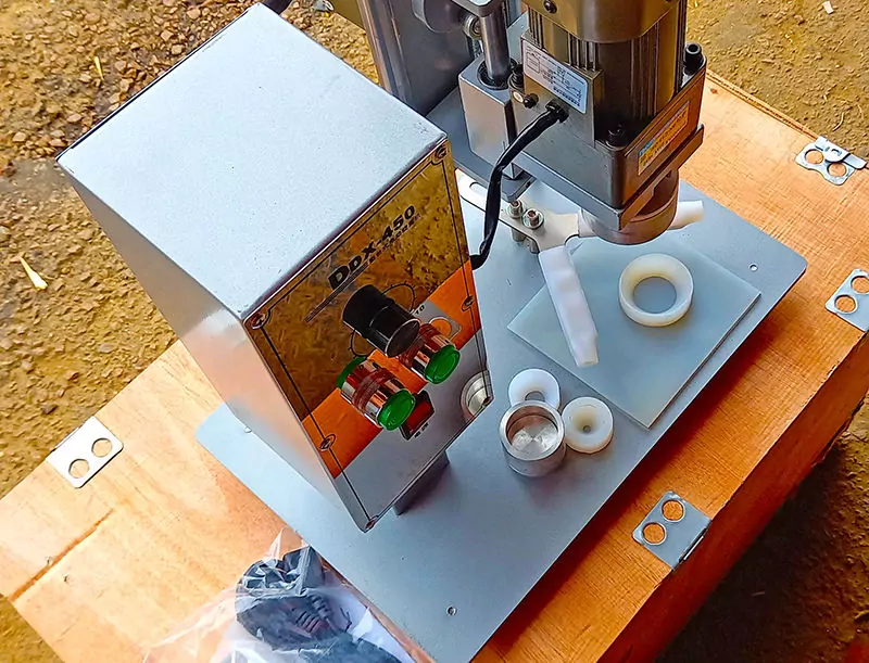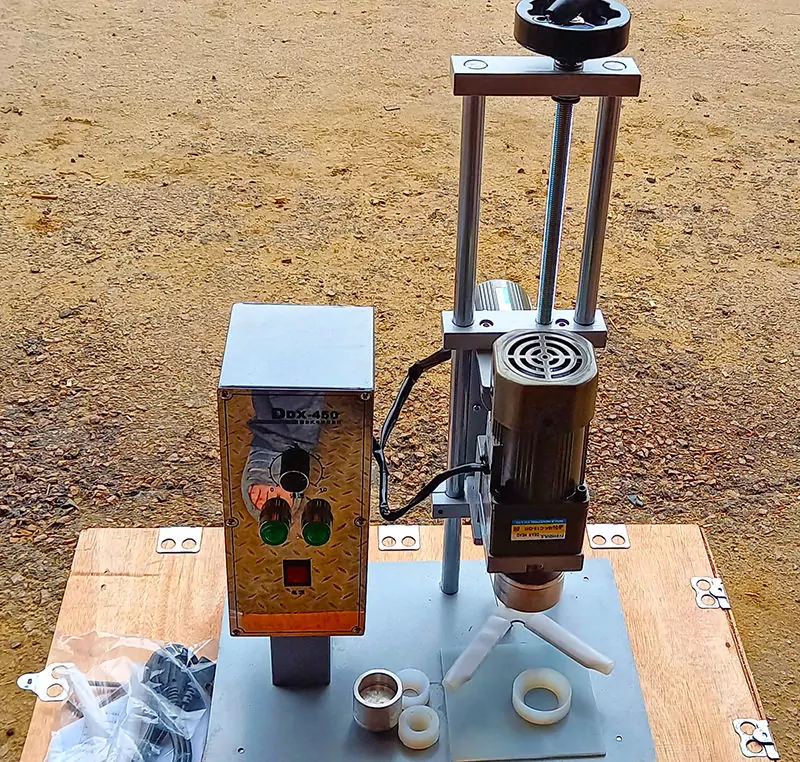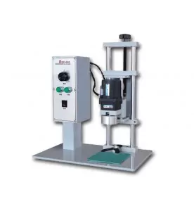 Предназначен для укупоривания тары винтовой пластиковой или металлической крышкой. Задача оператора накрыть тару крышкой и поставить под укупорщик, далее закрутка крышки происходит в автоматическом режиме. Оборудование настраивается по высоте тары и диаметру крышки, что позволяет укупоривать тару различных размеров. Укупорщик оснащен регулировкой скорости хода рабочей части и силой закрутки.